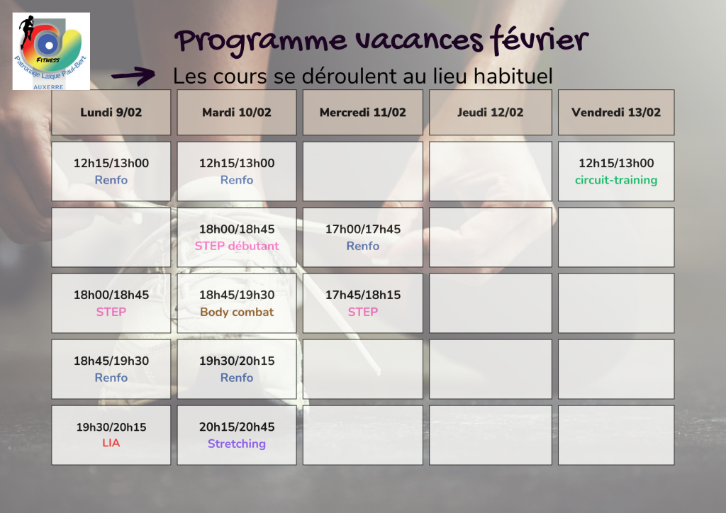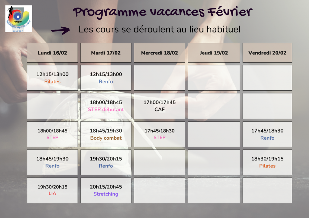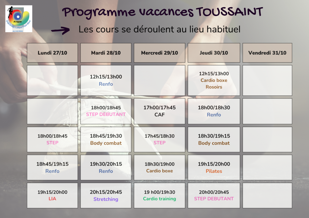 Fitness La section fitness du PLPB propose des cours de renforcement musculaire, TRX, pilates, stretching, LIA, Step, cardio-training, cardio boxe, Body-combat. TARIFS 183 Adhésion Fiche d'inscription format pdf Fiche d'inscription format doc